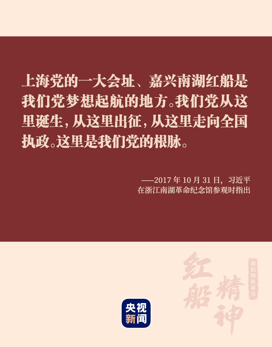 在浙江工作時,習(xí)近平為南湖革命紀念館奠基。2005年6月,他在文章《弘揚“紅船精神” 走在時代前列》中對“紅船精神”作出概括:“開天辟地、敢為人先的首創(chuàng)精神,堅定理想、百折不撓的奮斗精神,立黨為公、忠誠為民的奉獻精神。”