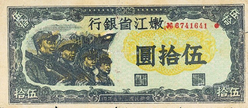 在抗戰(zhàn)勝利結(jié)束時(shí),山東解放區(qū)已有極大發(fā)展,有12.5萬平方公里的面積,占山東總面積的92%,擁有2400萬人口,占山東總?cè)丝诘?0%。1948年10月,山東的北海銀行幣與華北的冀南銀行幣、晉察冀邊區(qū)幣固定比價(jià)互相流通,1948年11月16日起,北海銀行幣與華中銀行幣等價(jià)流通。這一時(shí)期的北海銀行幣均不加蓋地名,便于山東以外的地區(qū)流通。1948年12月1日,華北銀行、北海銀行、西北農(nóng)民銀行合并,在石家莊成立中國人民銀行,但因工作的需要,北海銀行繼續(xù)營業(yè),1949年1月底開始回收北海銀行幣,同年11月1日改稱中國人民銀行山東分行,至此,北海銀行完成了它的歷史使命宣告結(jié)束。