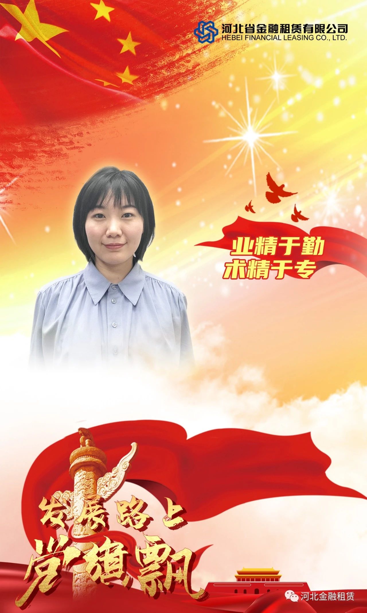 她是公司第一黨支部的支部書記,黨課學(xué)習(xí)、談心談話、小組分享、主題黨日活動等豐富多彩的活動全都一手組織,入黨12年,堅持行動在前,帶動在前;她是公司融資團(tuán)隊的業(yè)務(wù)骨干,在本職崗位上不斷探索,敢于擔(dān)當(dāng),踐行一名黨員的“知行合一”。