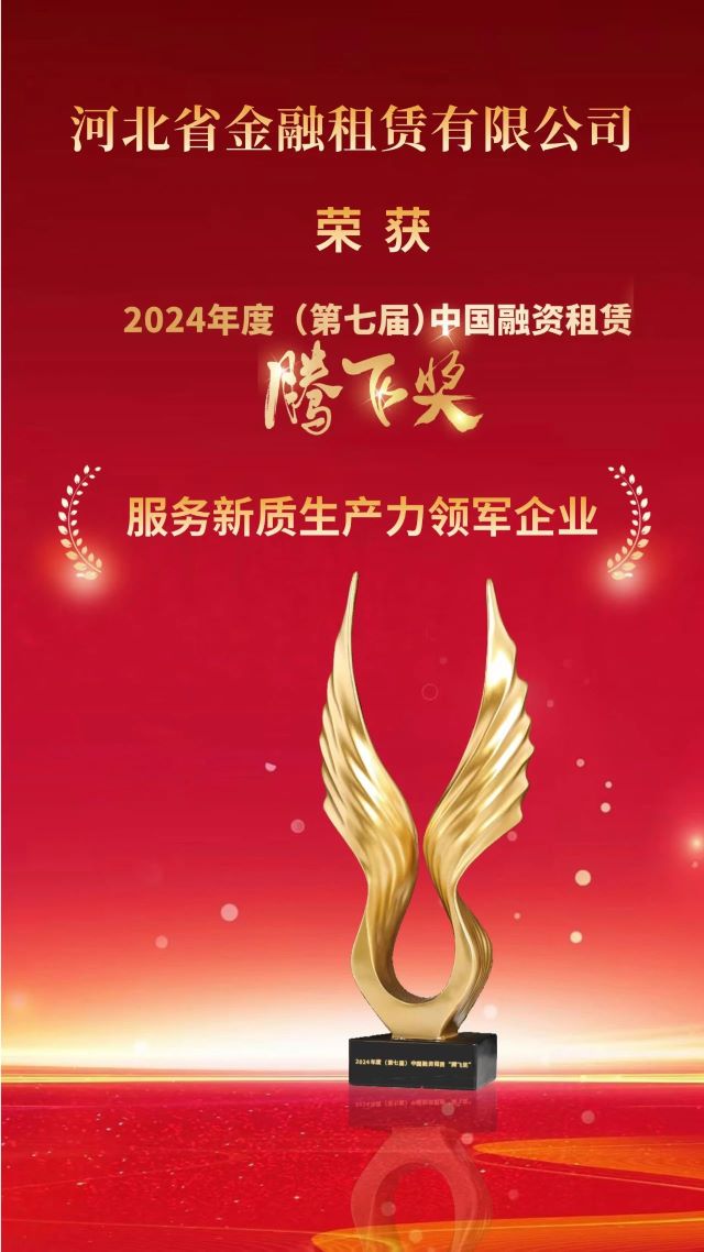 2024年12月4日-5日,以“發(fā)力‘兩新’租賃,助力先進(jìn)產(chǎn)能”為主題的2024年(第十一屆)全球租賃業(yè)競爭力論壇峰會(huì)在天津?yàn)I海新區(qū)圓滿舉行。河北省金融租賃有限公司(以下簡稱“河北金租”或“公司”)監(jiān)事長楊應(yīng)群受邀參會(huì),在此次峰會(huì)上,河北金租憑借在戰(zhàn)略性新興產(chǎn)業(yè)領(lǐng)域的務(wù)實(shí)探索和優(yōu)秀業(yè)績,榮獲“騰飛獎(jiǎng)·服務(wù)新質(zhì)生產(chǎn)力領(lǐng)軍企業(yè)”獎(jiǎng)項(xiàng)。