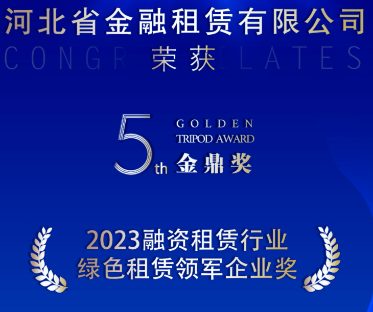 日前,2023中國融資租賃總經(jīng)理論壇暨“金鼎獎”頒獎盛典在京舉行,300多位金融租賃、融資租賃機(jī)構(gòu)齊聚一堂見證獎項揭曉。河北省金融租賃有限公司(以下簡稱“河北金租”)榮獲2023年度融資租賃行業(yè)綠色租賃領(lǐng)軍企業(yè)獎項。去年以來,河北金…