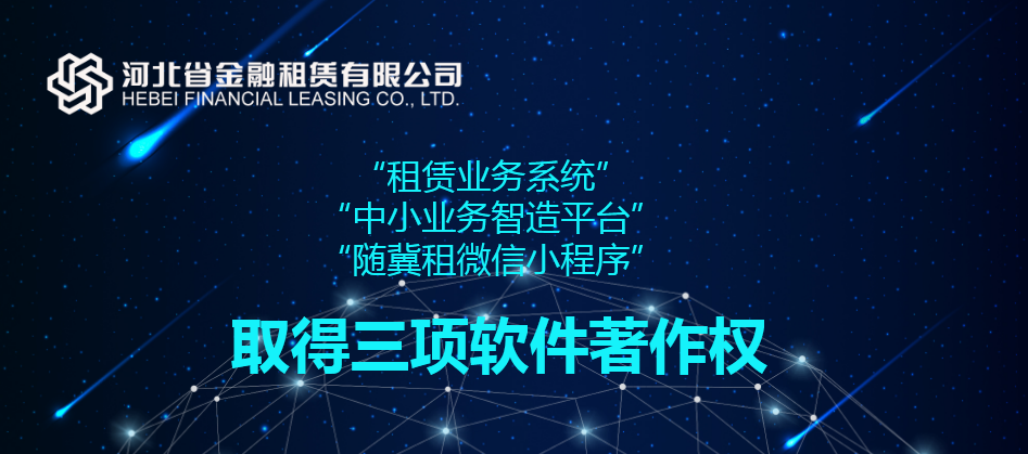 近日,由河北省金融租賃有限公司(以下簡稱“河北金租”)研發(fā)的“中小業(yè)務(wù)智造平臺”、“租賃業(yè)務(wù)系統(tǒng)”、“隨冀租微信小程序”三件軟件成果正式通過國家版權(quán)局審核,獲得計(jì)算機(jī)軟件著作權(quán),此舉進(jìn)一步完善了河北金租知識產(chǎn)權(quán)保護(hù)體系,也…